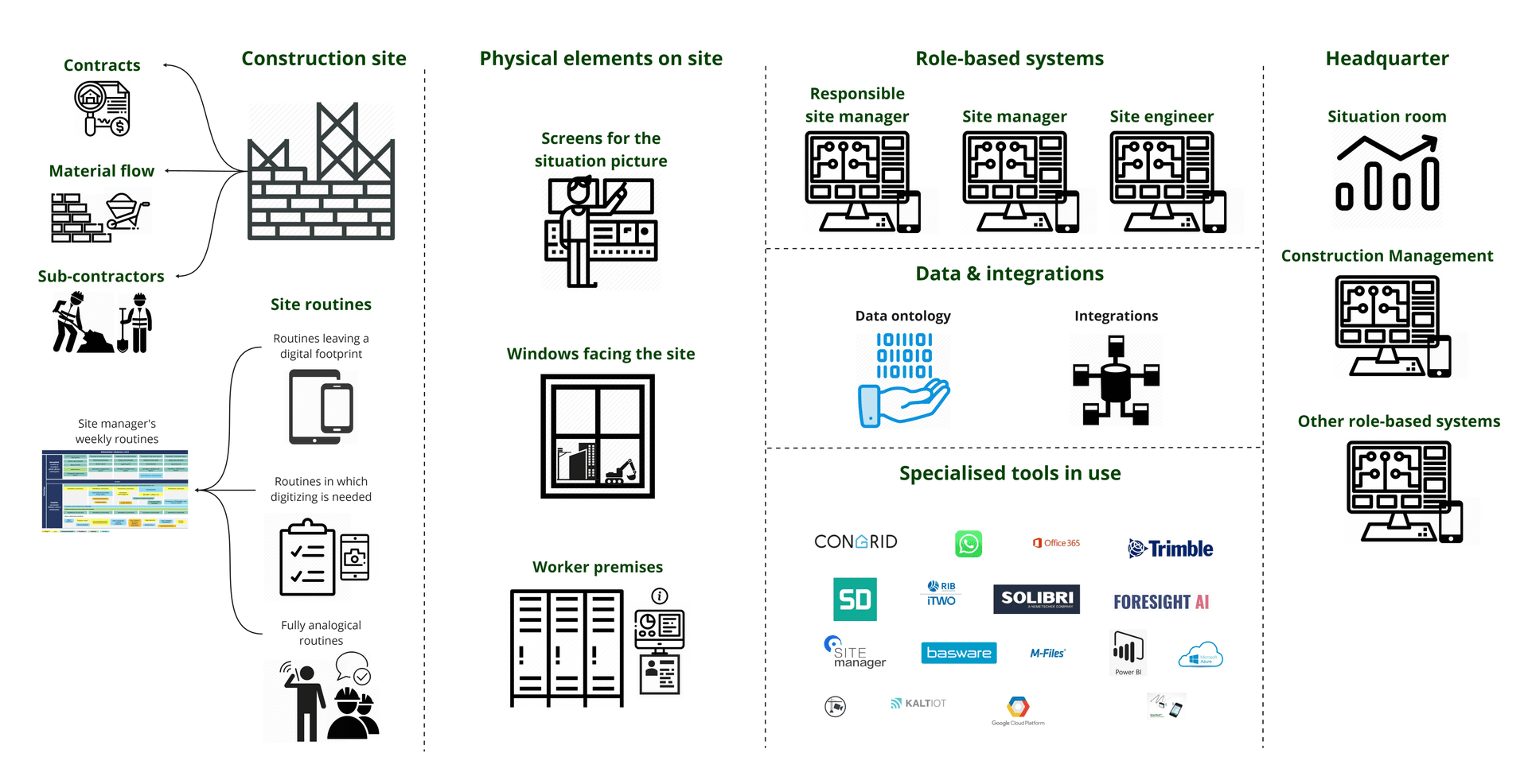 Construction is due for a productivity revolution. By adopting digital tools and modern production methods construction speed can be accelerated and quality significantly improved. Better situation awareness and increased predictability improve co-ordination and co-operation on-site and create value for the customer.